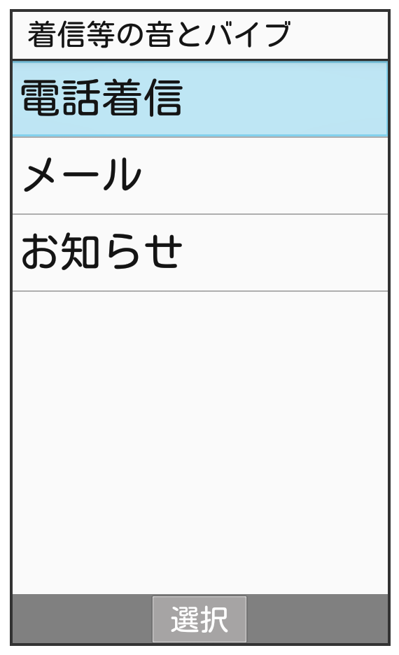 電話着信設定画面で/電話着信時に動作させるバイブレータのパターンを設定する
