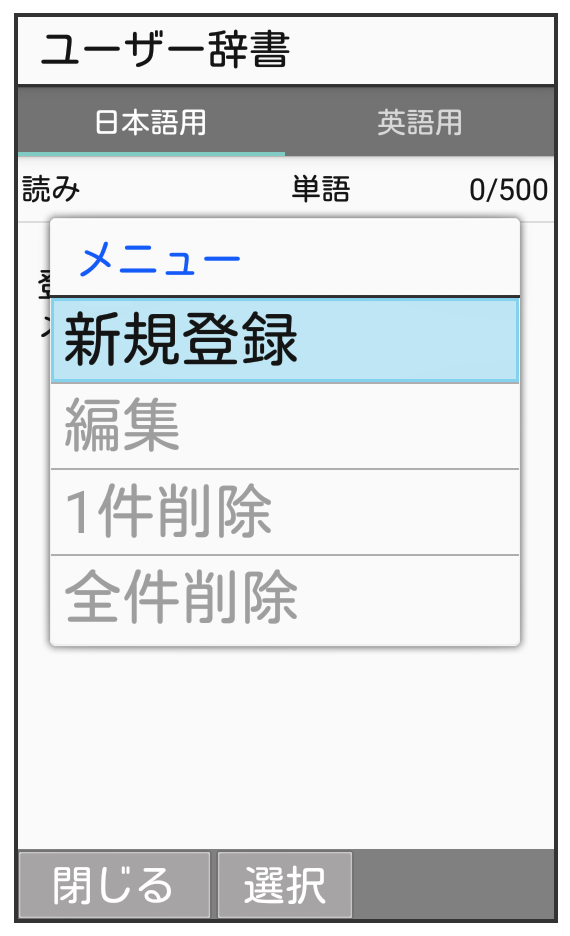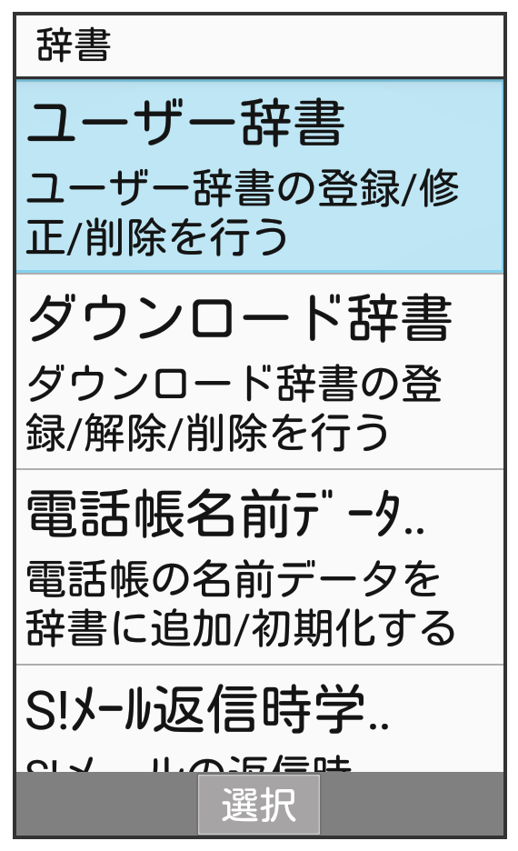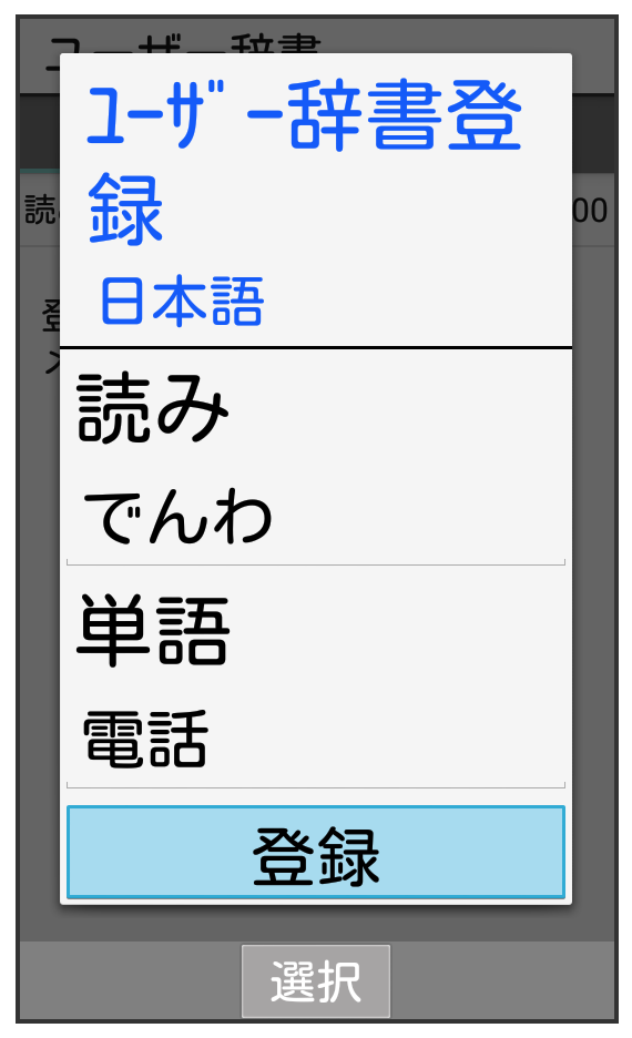 ユーザー辞書画面で単語を選択- ユーザー辞書画面で単語を選択
