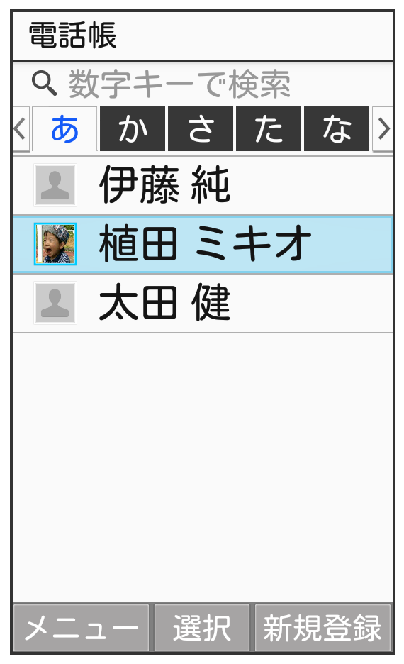 電話帳画面が表示されます。