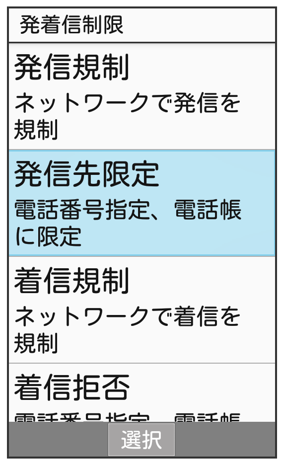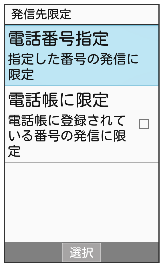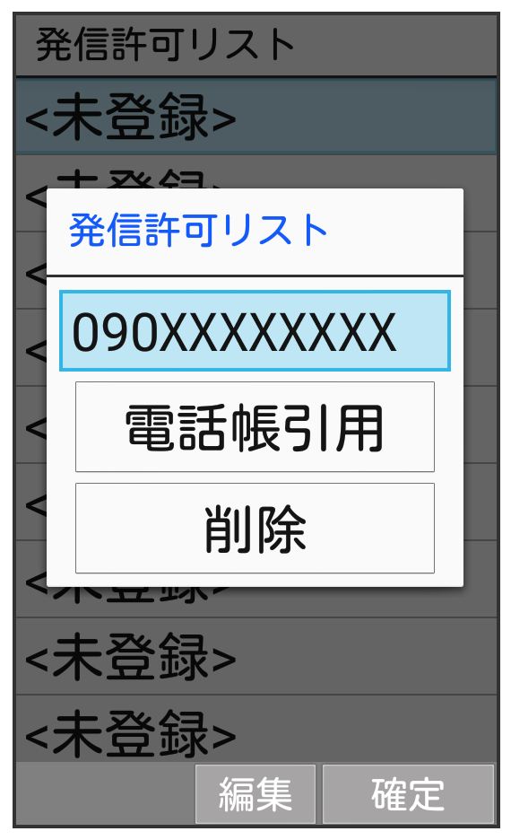 発信許可リスト画面で電話番号を選択- を選択して電話帳から電話番号を入力することもできます。