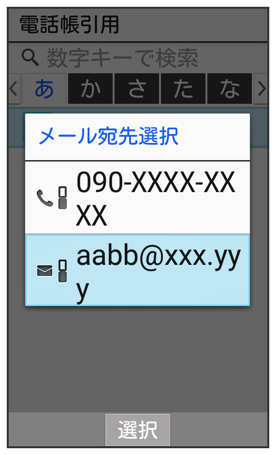 メールグループ設定画面で削除するグループを選択グループを選択して削除する