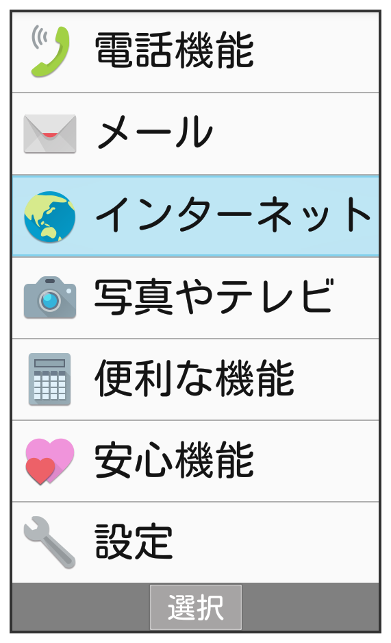 | ホームページ | 設定したホームページを表示します。お買い上げ時はYahoo! JAPANが表示されます。 |