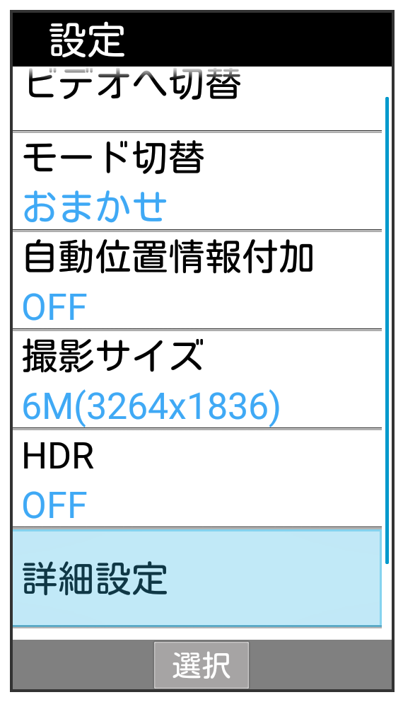 カメラ詳細設定画面(動画撮影時)で項目を選択カメラ詳細設定時のご注意