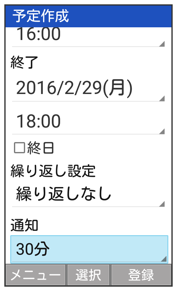 件名、開始日時/終了日時、通知、予定の内容を登録する方法を例に説明します。