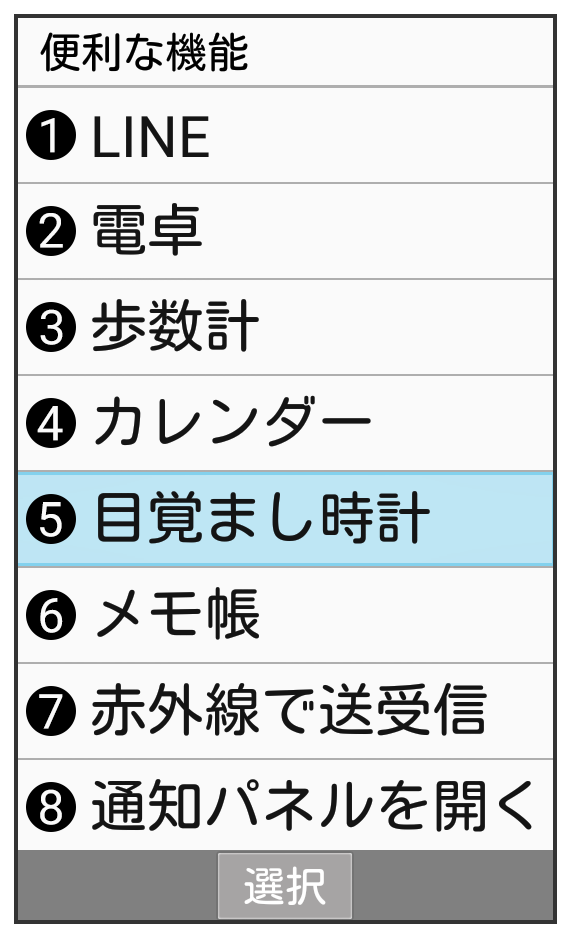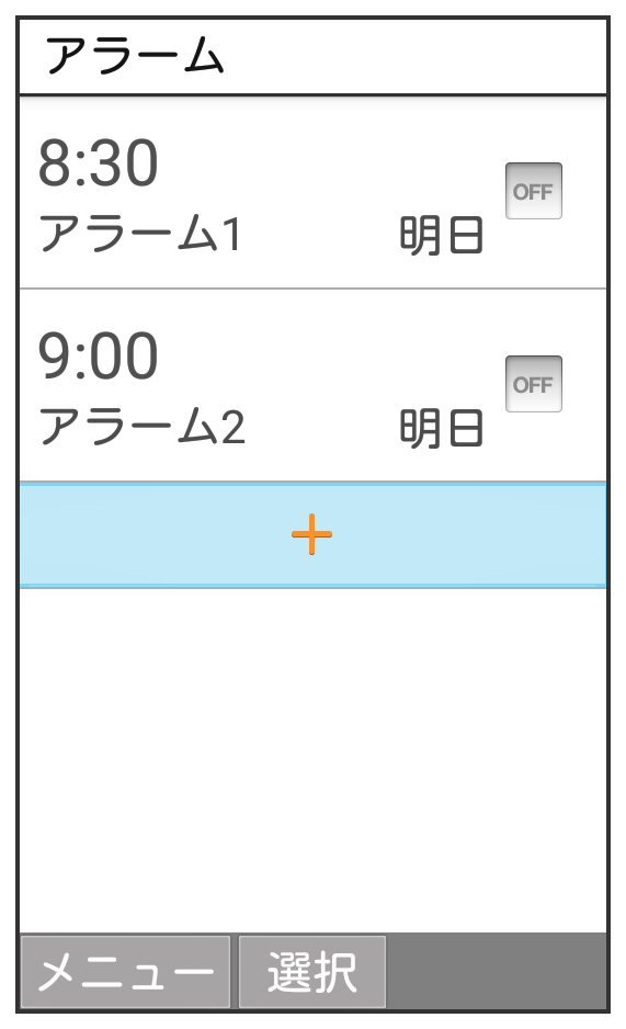 目覚まし時計一覧画面で- 目覚まし時計を選択