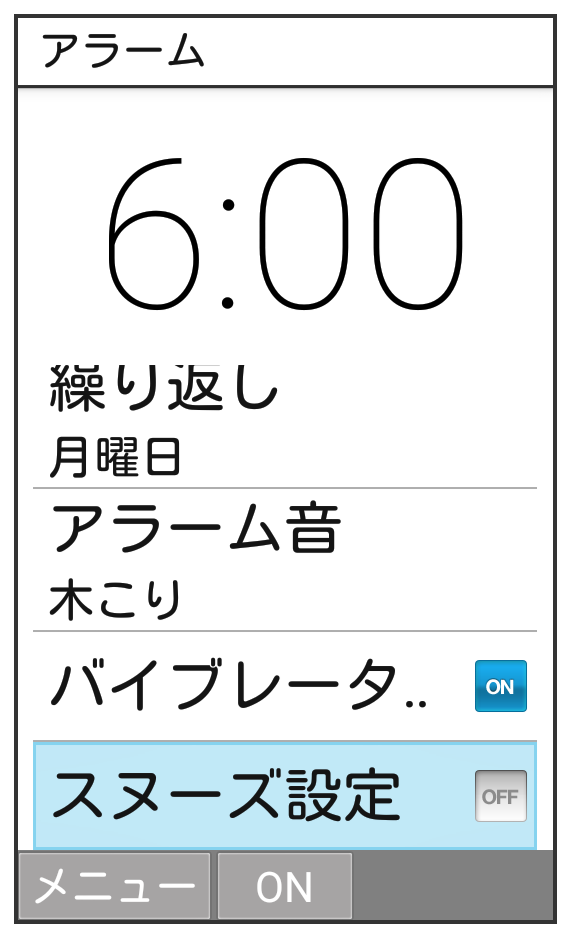 - スヌーズ(設定した間隔でくり返し目覚まし時計が鳴る機能)も設定できます。
