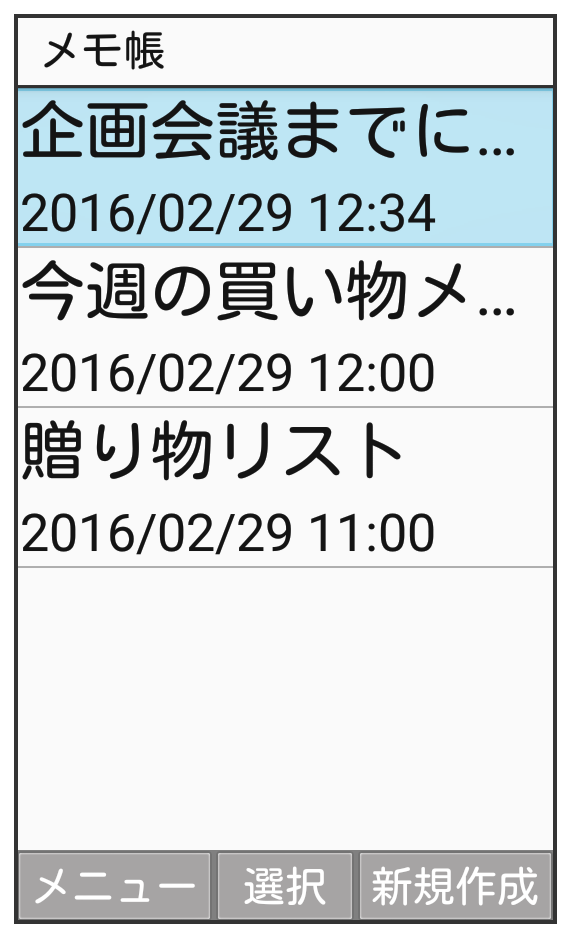 メモ帳一覧画面でメモを選択/メモ帳表示画面を表示メモを選択して送信する