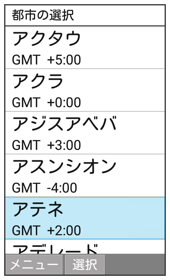 世界時計一覧画面で- 都市を選択