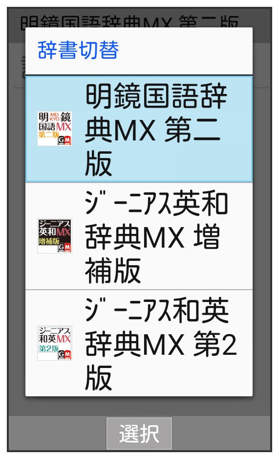 内蔵されている辞書を利用して、単語の意味を調べることができます。お買い上げ時は、次の電子辞書が内蔵されています(電子化の都合上、書籍とは一部異なる場合があります)。