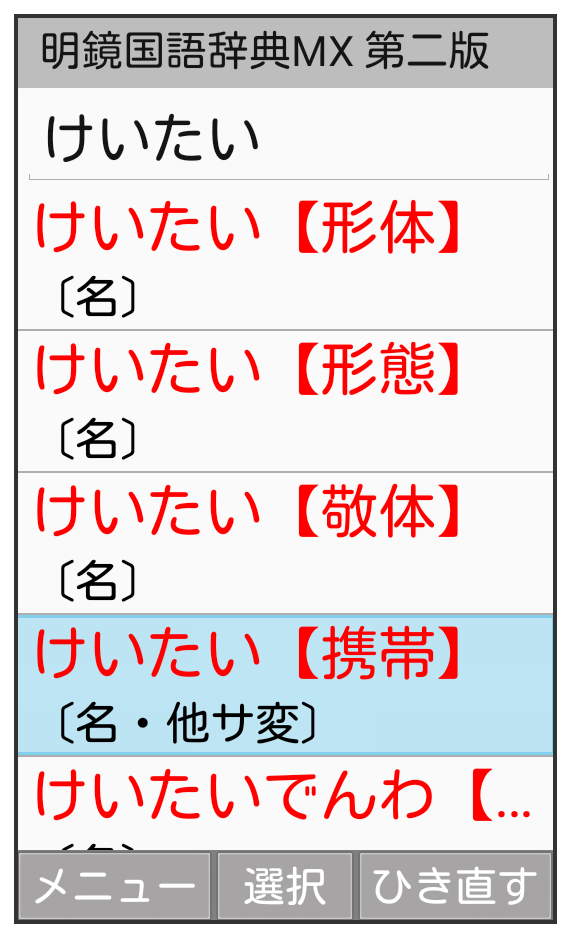 (ひき直す)を押すと、別の単語を検索できます。このあと、語句を入力して調べ直してください。