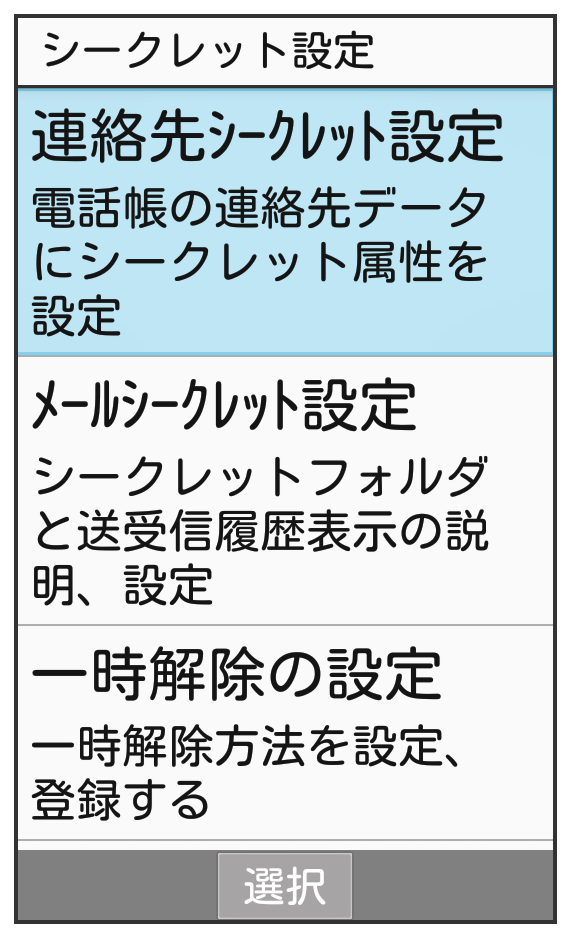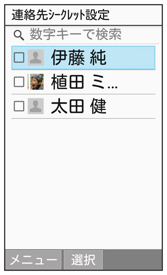 シークレットに設定した電話帳は、電話帳画面や宛先選択画面などで表示されなくなります。