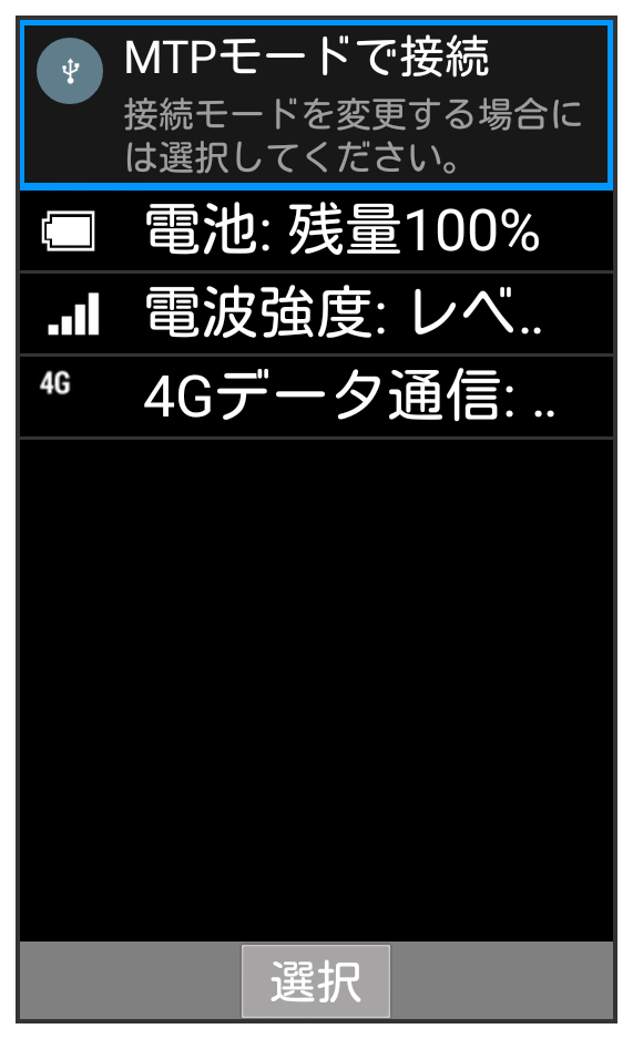 本機がポータブルデバイス(MTP)としてパソコンに認識され、ファイルをやりとりできるようになります。