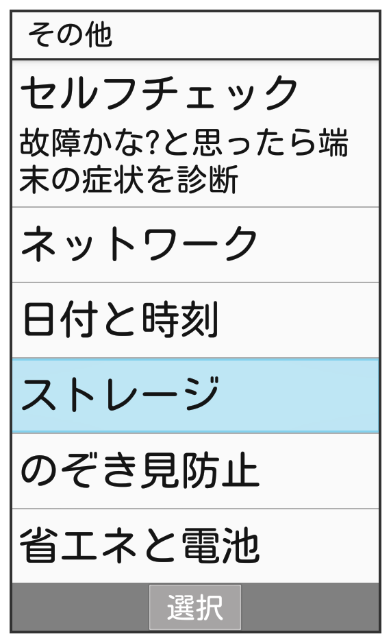 | 空き容量 | 本体メモリやSDカードの空き容量を確認します。 |
