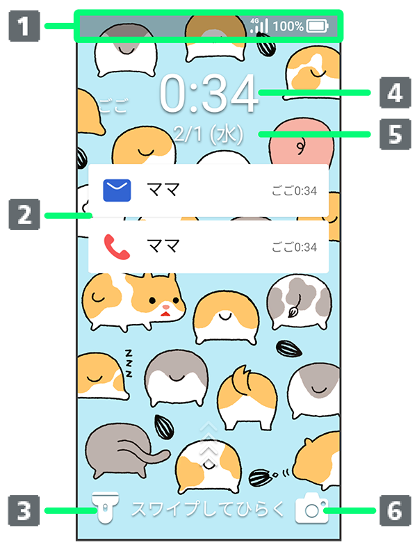| 通知 | メールを受信したときや不在着信があったときなどに通知を表示します。 通知をタップすると詳細内容を表示することができます。 |