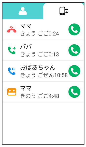 通話履歴一覧画面では、着信者の電話帳への登録状況に応じて、画面の表示項目が異なります。