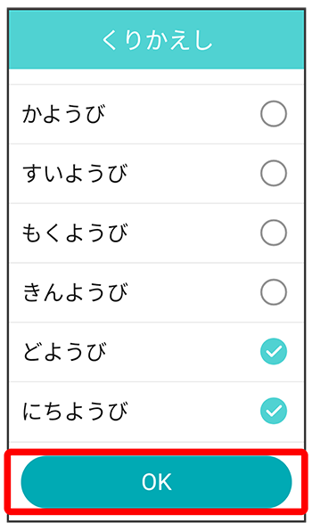 同じ時刻にアラームを鳴らす曜日の設定画面が表示されます。