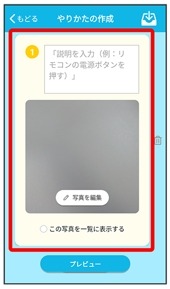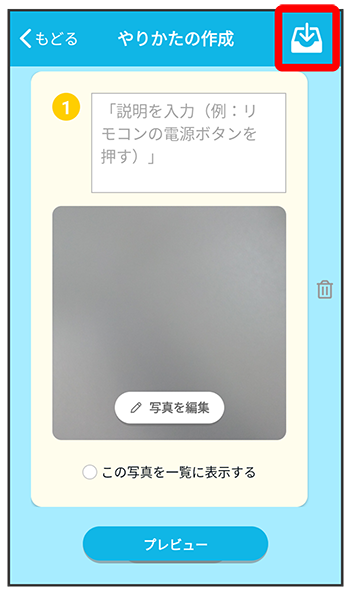 をタップします。 - おたすけメモに設定する写真に、赤い矢印、赤い四角を入れるなどの加工をすることはできません。加工した写真をおたすけメモに設定する場合は、管理者のスマートフォンの写真加工アプリなどで加工した写真を本機に送信してください。