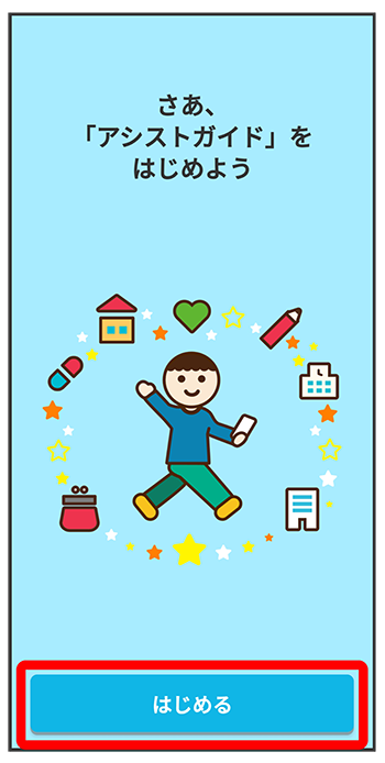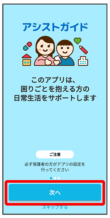 データ引き継ぎ先のスマホにアシストガイドのアプリをダウンロードして、起動