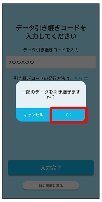 引き継ぎたいデータのニックネームが表示されていることを確認し、