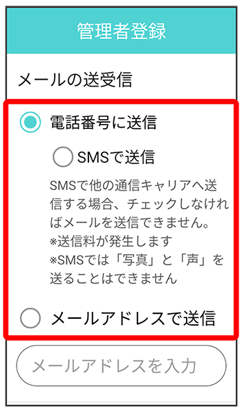 - 入力した電話番号がソフトバンクまたはワイモバイルの携帯電話の場合は、電話番号だけでメールを送受信できます。
