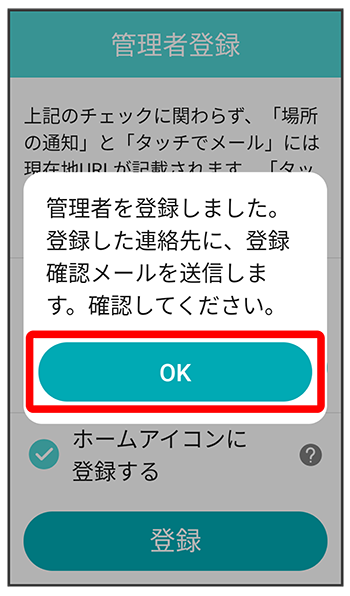 管理者が登録され、登録した連絡先に登録確認メールが送信されます。