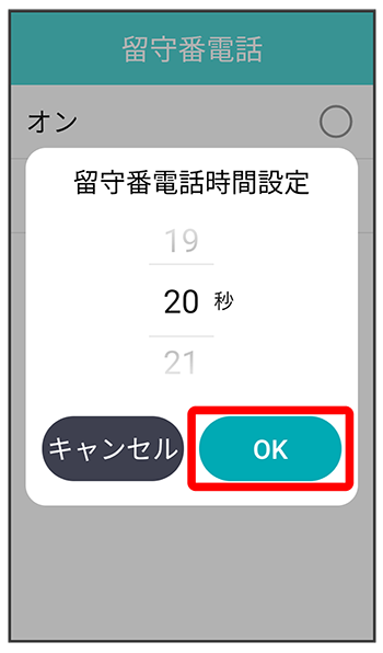 留守番電話が応答するまでの秒数を上下にフリックして表示