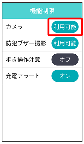 - をタップすると、表示がに変わり、機能制限が解除されます。