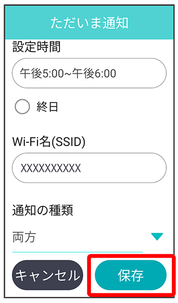 名称、曜日、設定時間、Wi-Fi名(SSID)、通知の種類を設定