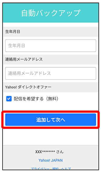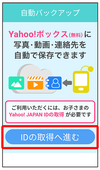 - 利用にはお子さまのYahoo! JAPAN IDの取得が必要です。自動バックアップの初期設定時に、新規のYahoo! JAPAN IDが作成されます。