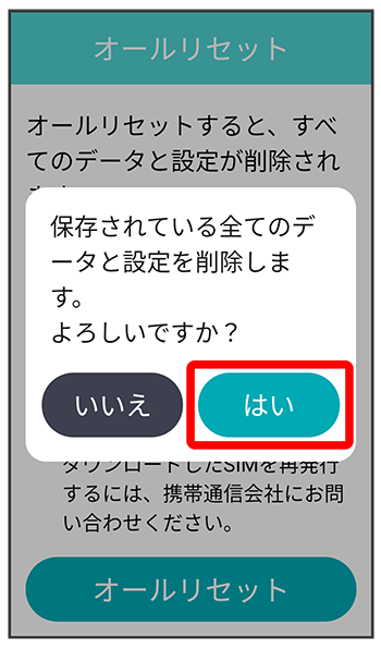 本機が再起動します。本機に登録されているデータや設定などはすべて削除され、お買い上げ時の状態に戻ります。