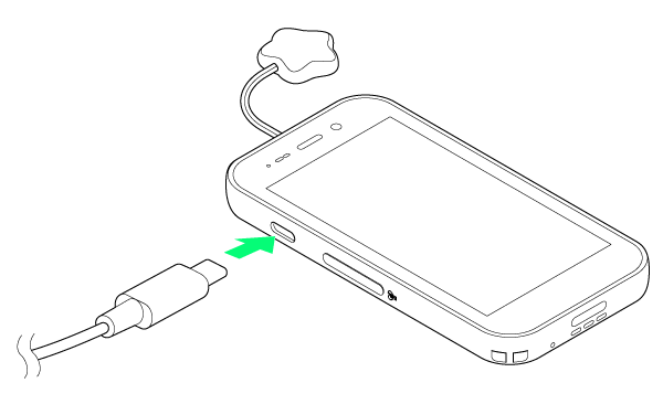 - 電池アイコンの電池残量を示す部分が緑色に変わります。充電が完了すると、お知らせLEDが消灯します。