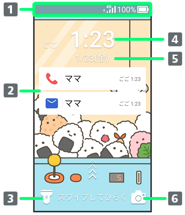 | 通知 | メールを受信したときや不在着信があったときなどに通知を表示します。 通知をタップすると詳細内容を表示することができます。 |
