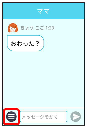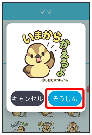 スタンプ送信に失敗すると、「メールをおくれませんでした」のメッセージが表示されます。をタップすると、再度スタンプを送信できます。