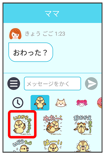 ここでは、すでにメールのやり取りをしている相手にスタンプを送信する場合を例に説明します。