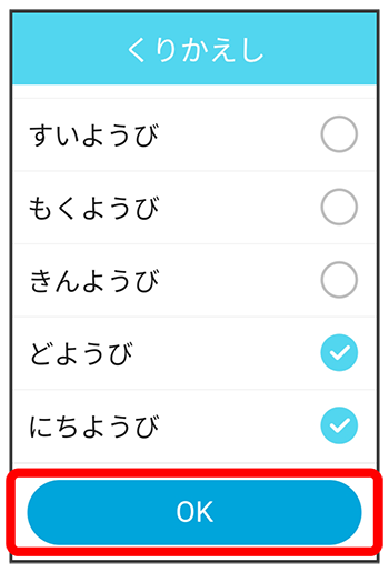 同じ時刻にアラームを鳴らす曜日の設定画面が表示されます。