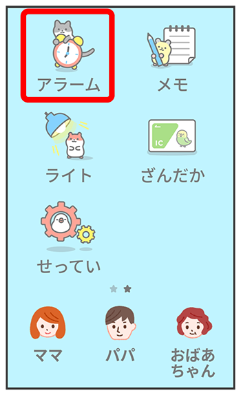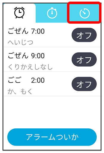アラーム画面が表示されます。