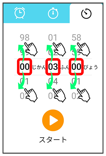 カウントダウンする時間を上下にフリックして選択