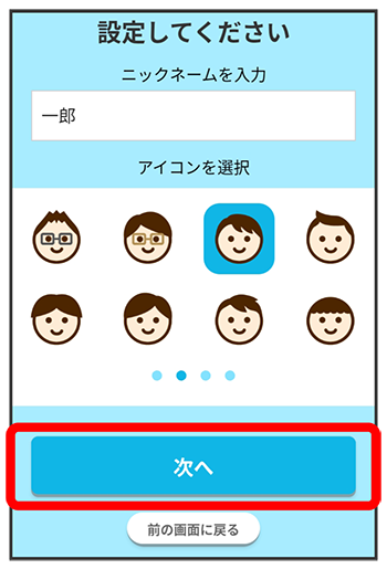 画面の指示に従って、ニックネームやアイコンなどを設定