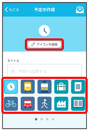 画面の下に表示された一覧から予定アイコンをひとつ選択