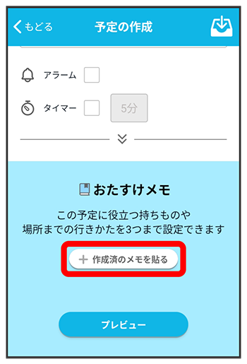 予定におたすけメモを貼る