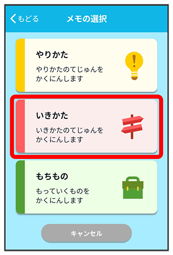 おたすけメモのカテゴリー(種類)を選択