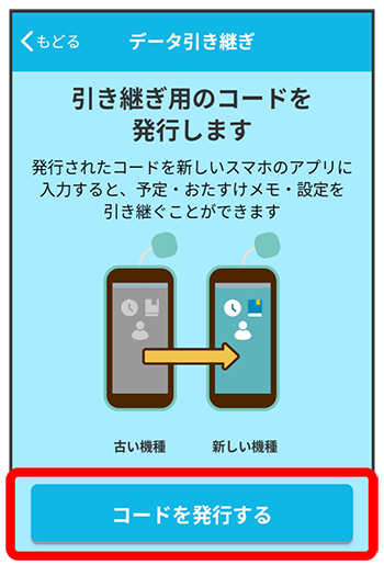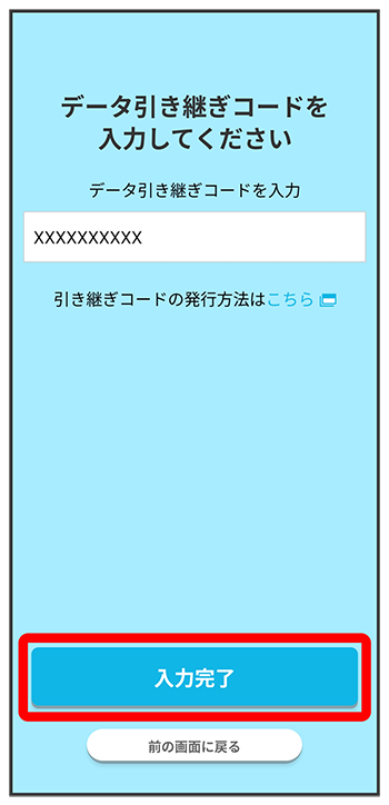 で確認した引き継ぎ用のコードを入力し、