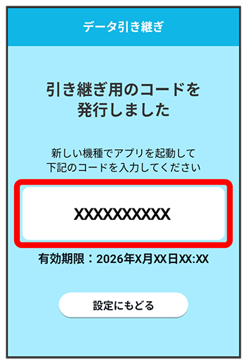 表示された引き継ぎ用のコードを確認