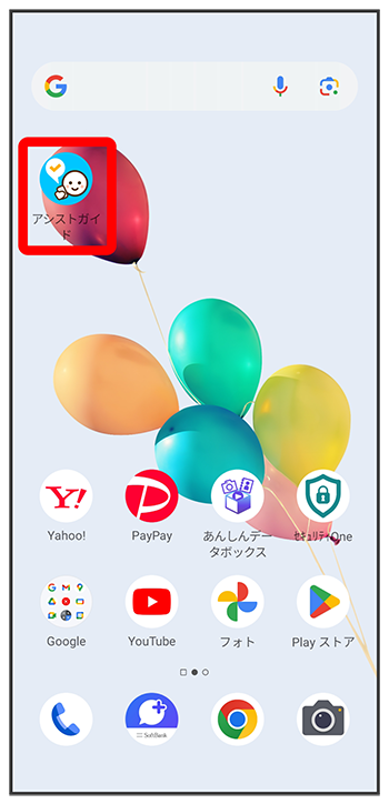 データ引き継ぎ先のスマホにアシストガイドのアプリをダウンロードして、起動
