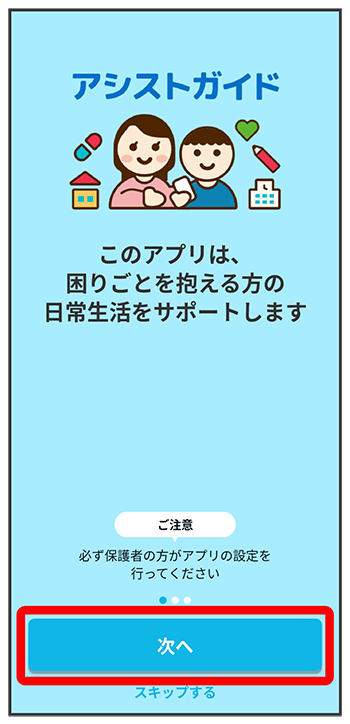 「アシストガイドの利用設定を開始します」画面で