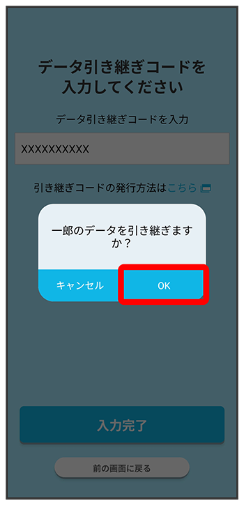 アプリのデータの引き継ぎが完了します。