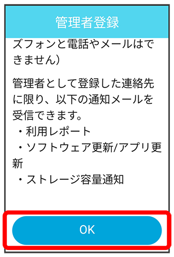 - すでに管理者が登録されている場合は、をタップすると、連絡先の登録ができます。