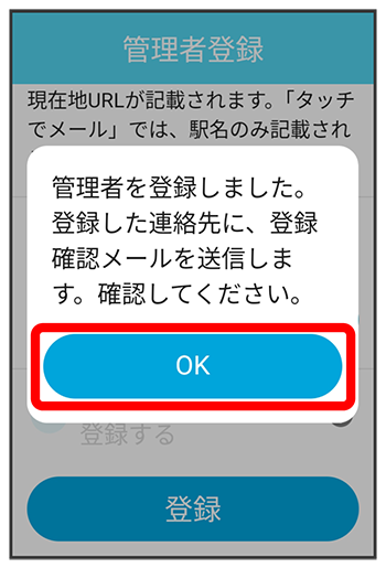 管理者が登録され、登録した連絡先に登録確認メールが送信されます。