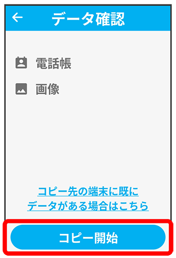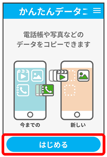 - 事前に、データをコピーしたい端末に「かんたんデータコピー」アプリをインストールしてください。