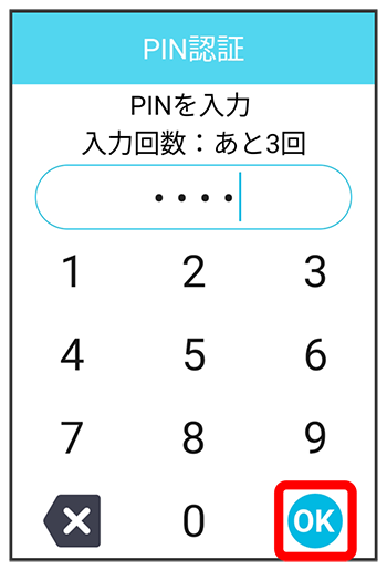 PINコードの入力を3回間違えると、PINロック状態となります。その際は、PINロック解除コード(PUKコード)が必要となります。PUKコードについては、お問い合わせ先までご連絡ください。PUKコードを10回間違えると、eSIMがロックされ、本機が使用できなくなります。その際には、ソフトバンクショップにてeSIMの再発行(有償)が必要となります。